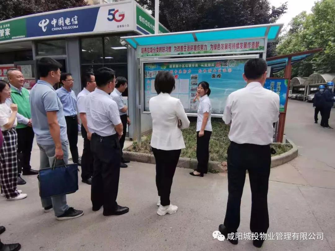 | 5月28日上午,省住建廳城市管理處、省財政廳經濟建設處一行人前來城投物業(yè)愿景園小區(qū)調研垃圾分類工作。