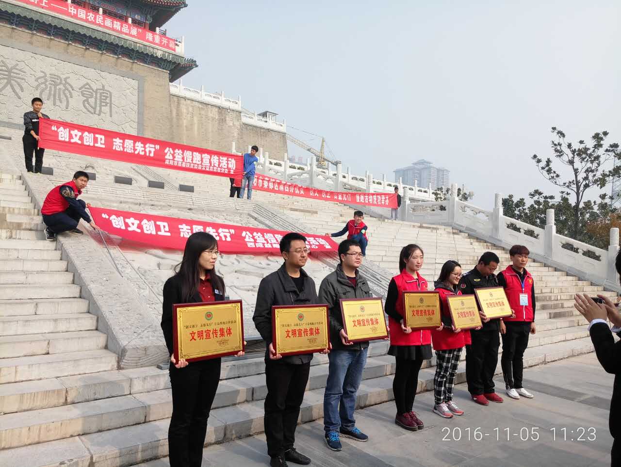 到達(dá)終點(diǎn)后,所有參與團(tuán)體于在清渭樓前集合。城投集團(tuán)志愿者服務(wù)隊(duì)代表領(lǐng)取了由咸陽市慈善扶貧協(xié)會(huì)公益志愿者分會(huì)頒發(fā)的榮譽(yù)證書,最后全體志愿者們合影留念,記錄下了這寶貴的一刻。