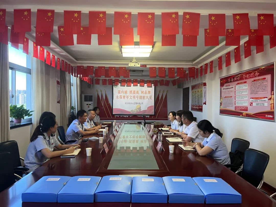 6月15日下午,渭城區(qū)稅務(wù)局機(jī)關(guān)黨委副書記、團(tuán)委書記、黨建工作股股長(zhǎng)孫飛龍一行來城投物業(yè)公司就青年文明號(hào)創(chuàng)建工作進(jìn)行交流,城投物業(yè)公司董事長(zhǎng)、總經(jīng)理王雅玲,支部書記魏述剛,集團(tuán)團(tuán)委書記史楠及有關(guān)部門負(fù)責(zé)人參加。