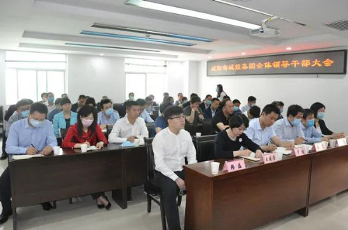 市國資委黨委書記、主任韓彥霄出席會議并講話,市城投集團公司黨委書記、董事長李立戰(zhàn)主持會議,市國資委黨委委員、副主任唐璞,市國資委組干科科長吳昭,市委組織部干部二科干部秋元元出席會議。集團公司領導班子全體成員、機關中層干部、下屬各單位領導班子成員共50余人參加會議。