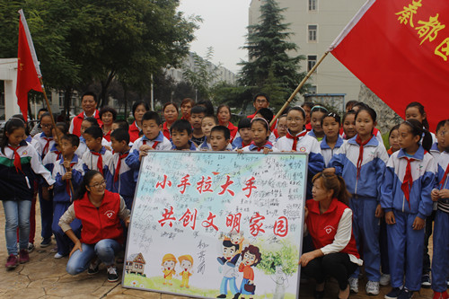 河南街手牽手義務(wù)拾垃圾